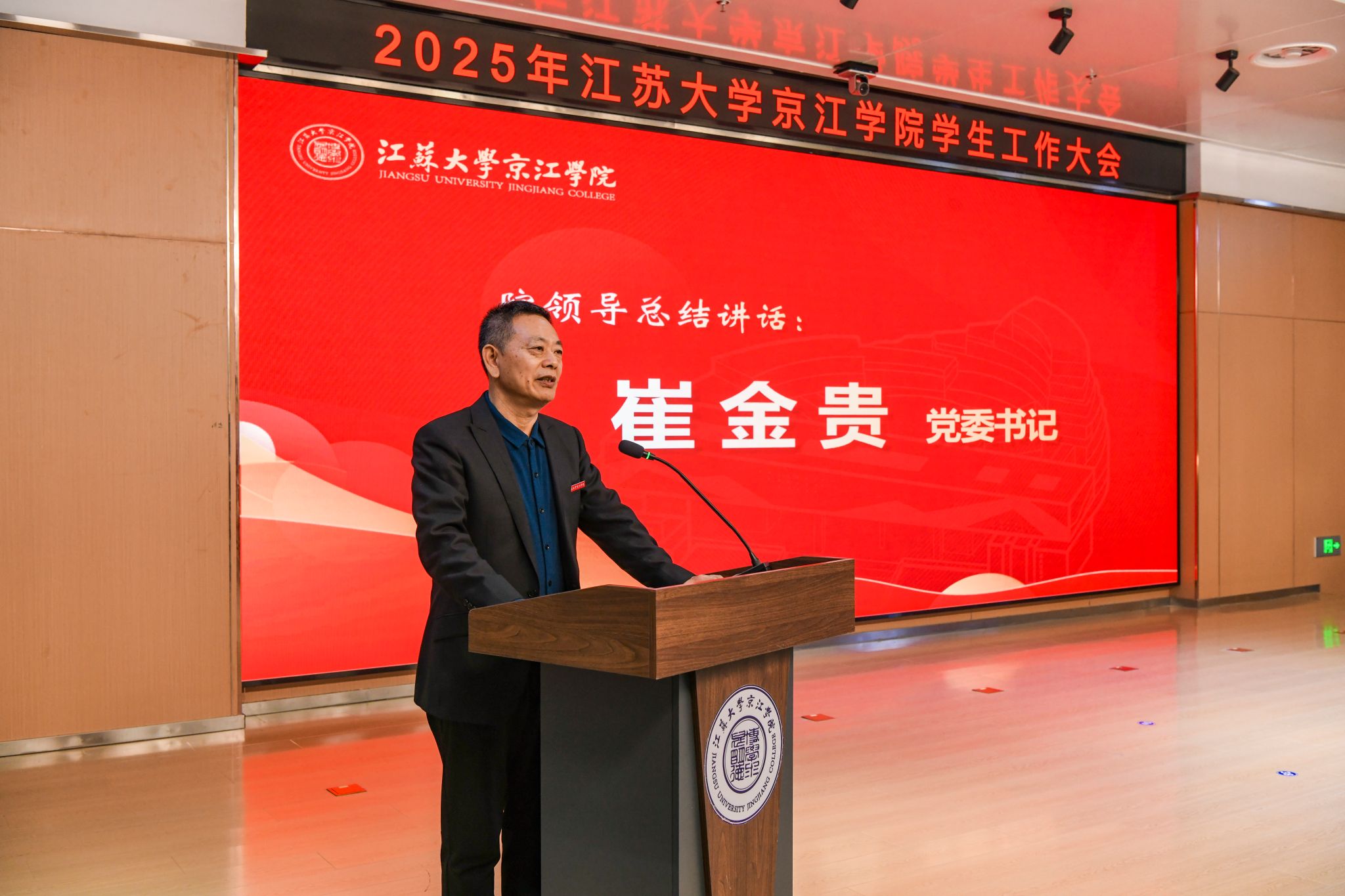 大会最后,京江学院党委书记崔金贵作总结讲话。他对京江学院学生工作取得的成绩表示肯定,并对下一步工作提出明确要求,强调要坚持立德树人根本任务,聚焦人才培养目标,强化协同,深化改革,不断推动学生工作提质增效,为培养更多领军型应用人才贡献力量。(撰稿单位:学生工作部/图片来源:综合办公室)