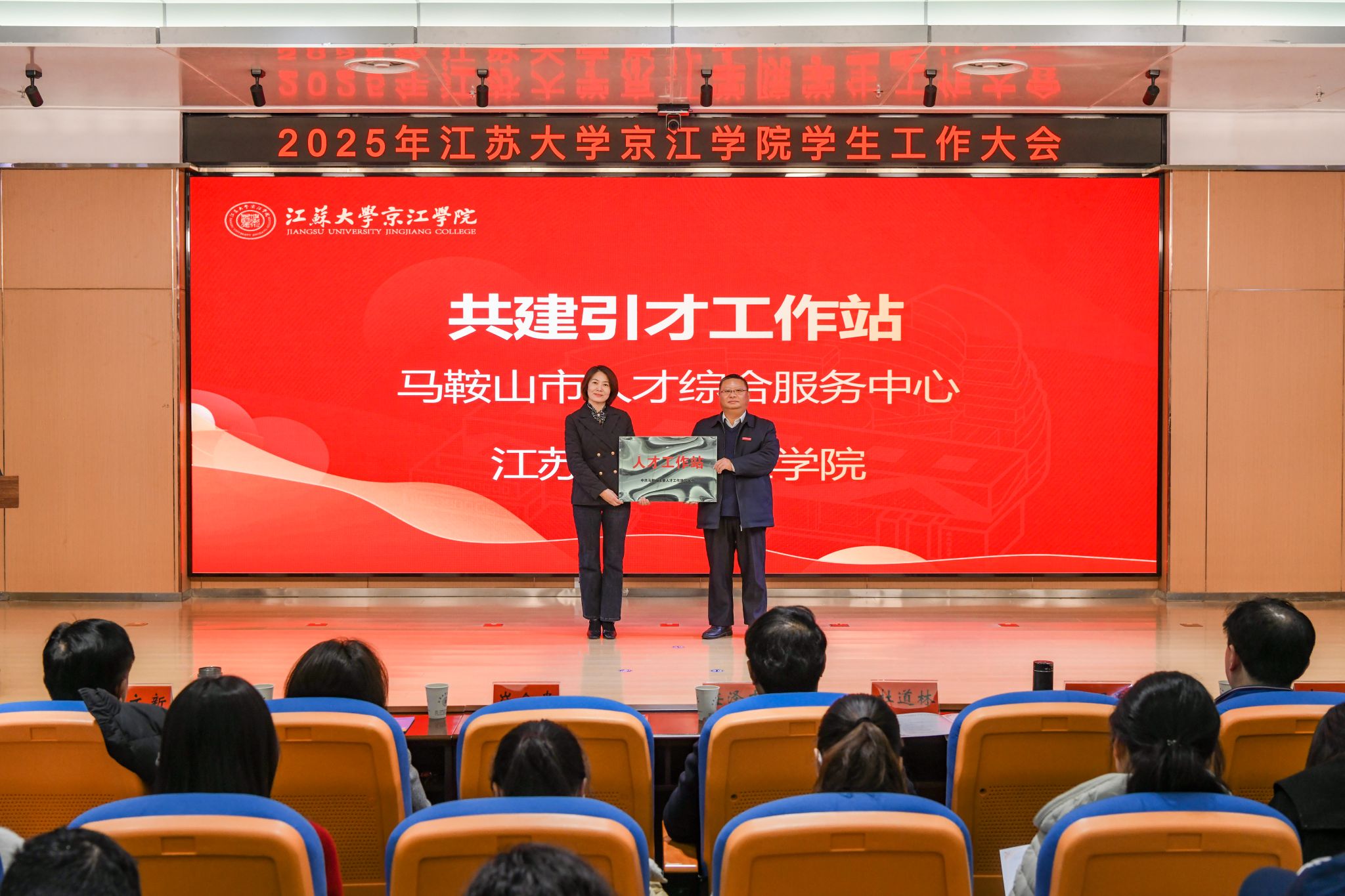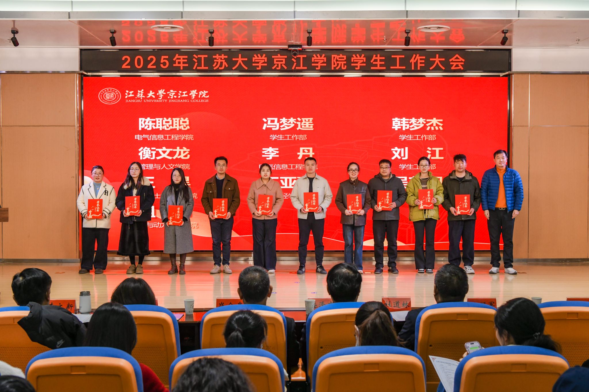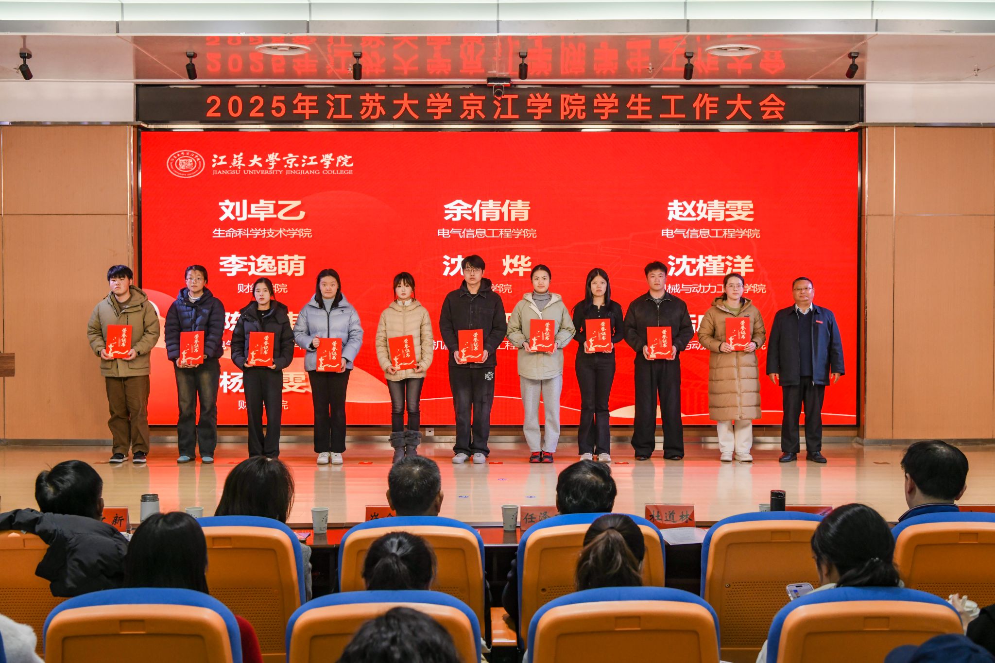 为全面总结学生工作育人经验,凝聚育人合力,推动学生工作高质量发展,12月17日,京江学院学生工作大会在学术交流中心第四报告厅隆重举行。江苏大学学生工作处处长任泽中,全体院领导,各职能部门部长、副部长、部长助理,各二级学院党总支书记、院长、系主任、实验室主任,共建单位代表,全体辅导员,各二级学院学生代表齐聚一堂,共商学院学生工作发展大计。京江学院党委副书记、纪委书记蒋豪主持大会。