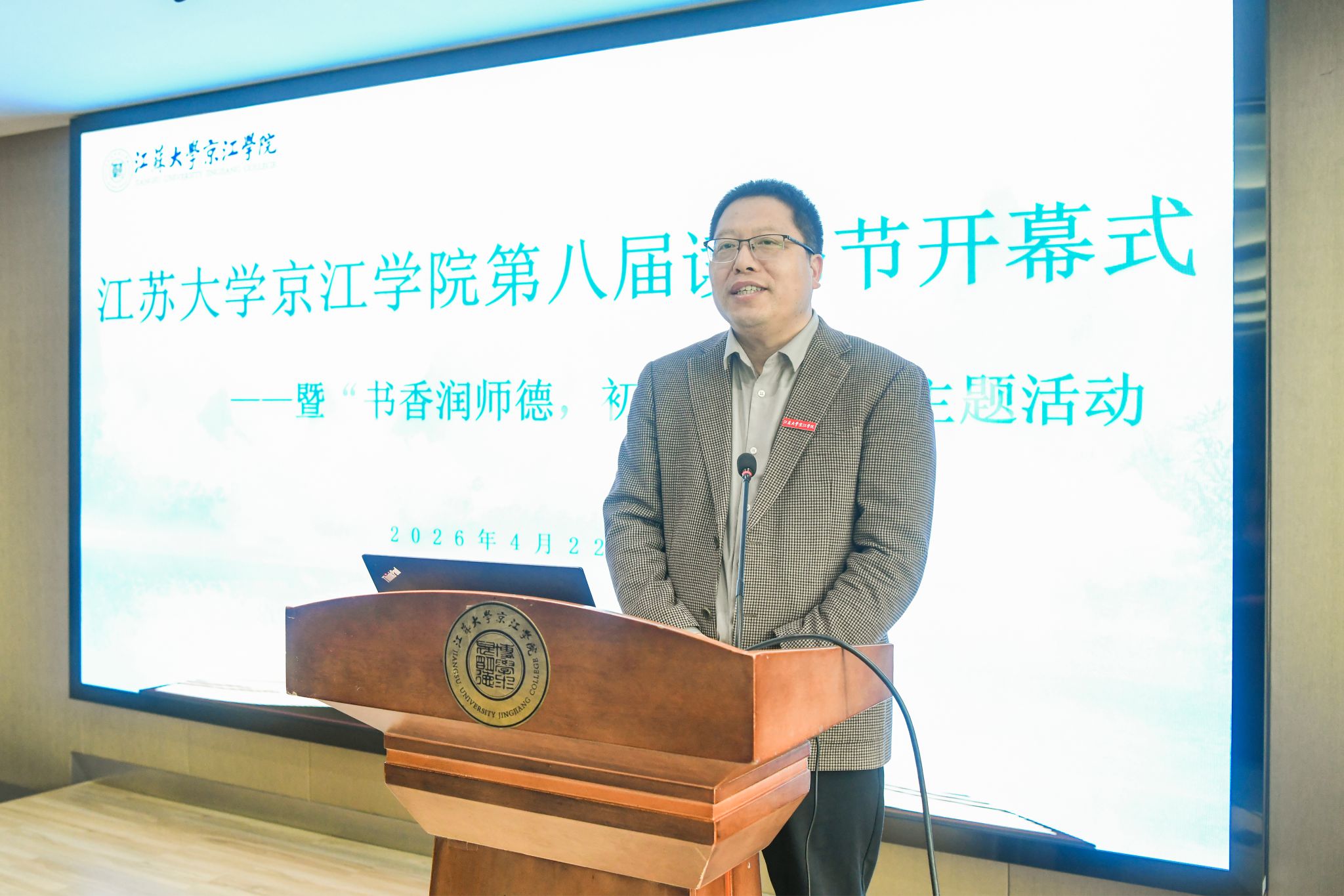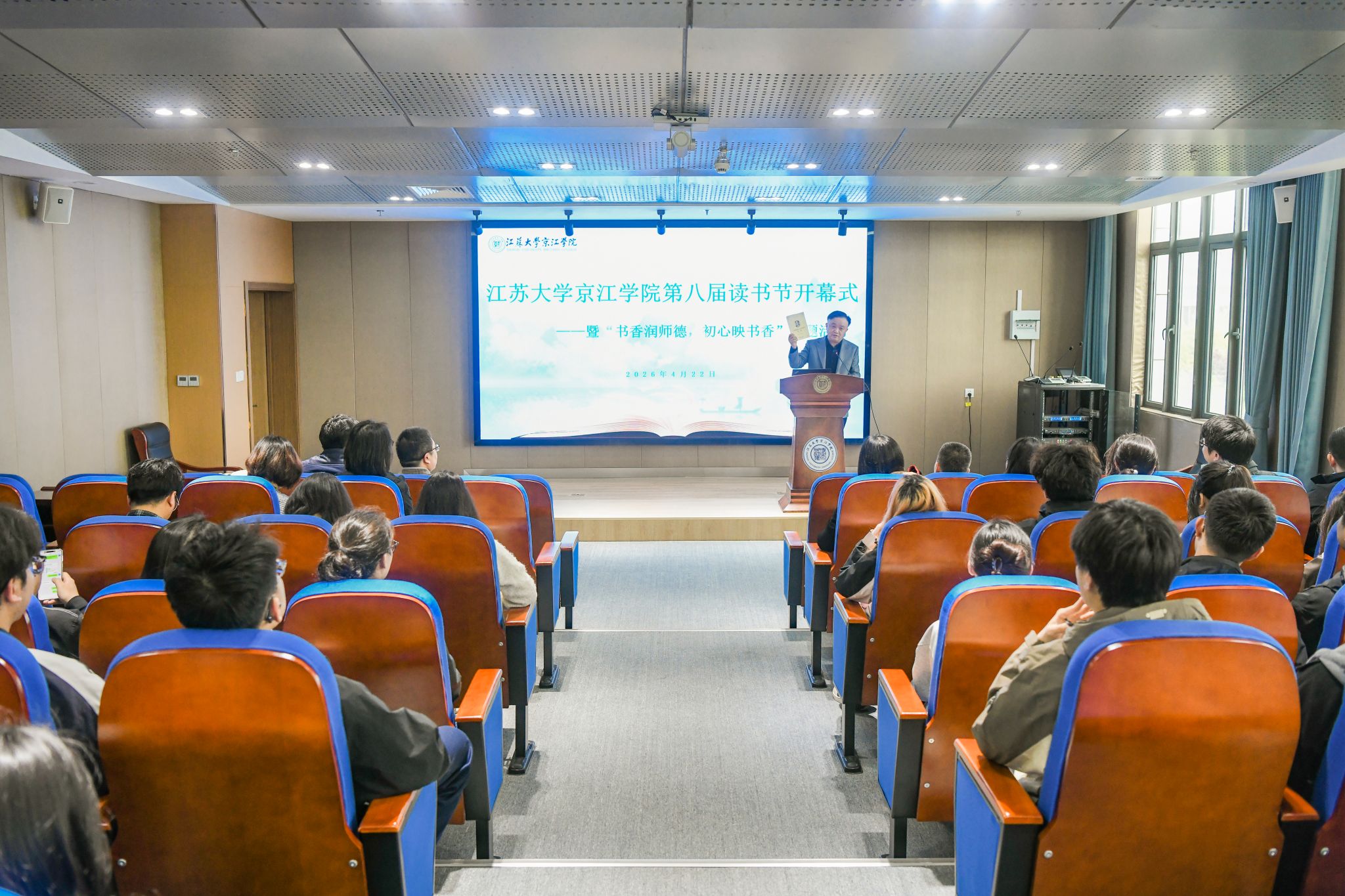 为深入推进书香校园建设,厚植师德涵养与学风根基,4月22日,江苏大学京江学院第八届读书节开幕式暨“书香润师德,初心映书香”主题活动在京江学院学术报告厅隆重举行。京江学院党委书记汪少华,院长朱永跃,副院长范艳华,院党委副书记、纪委书记蒋豪及二级党组织书记、师生代表参加活动。活动由副院长李文新主持。