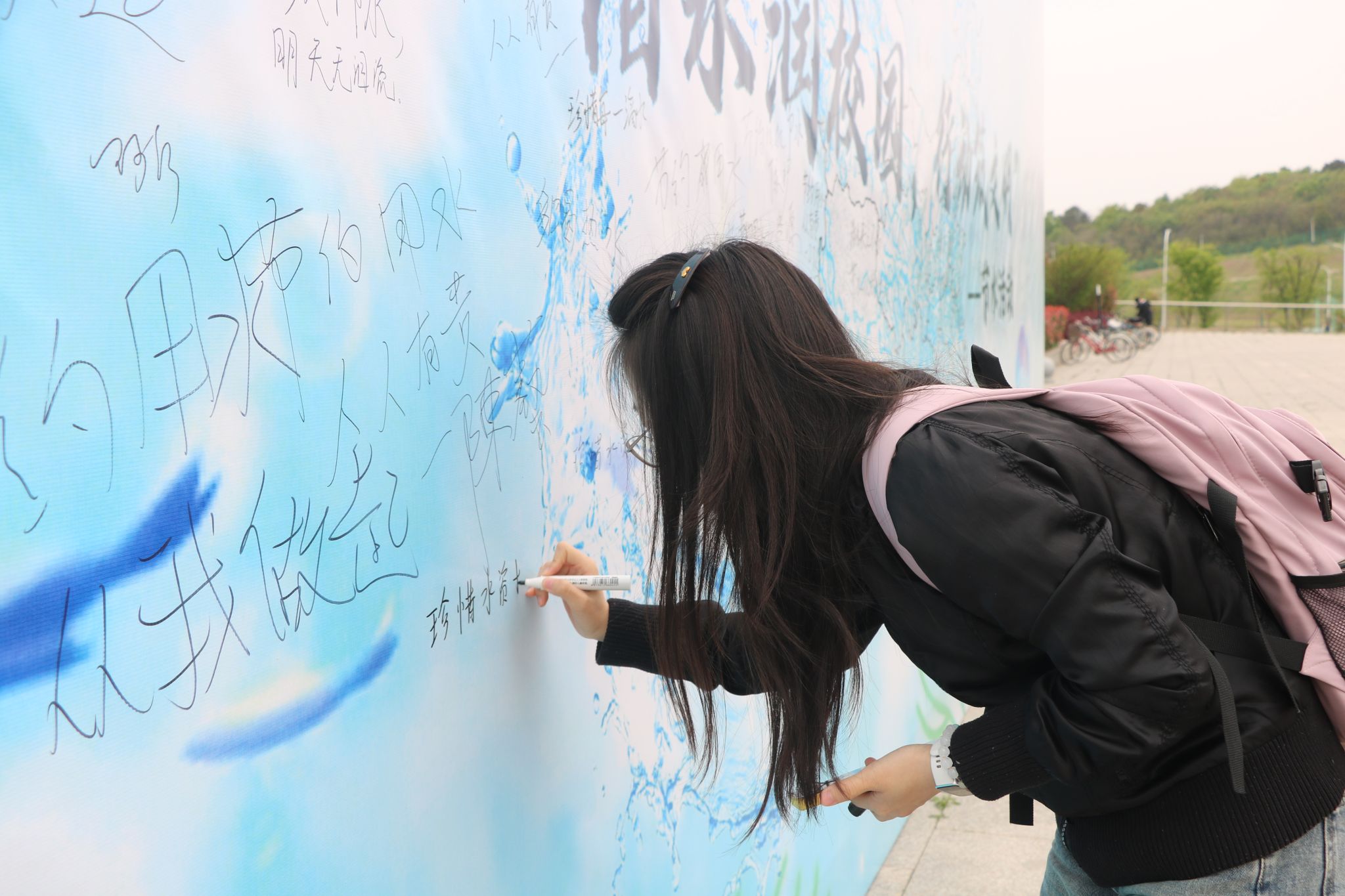 本次活动以趣味互动、沉浸式体验为特色,设置三大主题环节,让节水理念入脑入心。“节水知识知多少” 线上答题环节,师生扫码参与答题,在轻松氛围中学习节水知识,认清水资源现状,牢固树立节水观念;“寻迹江河湖海,守护华夏水源” 主题展板前,大家纷纷把家乡的江河湖海名称标注于水系地图中,也有同学写下了自己创作的节水标语,直观感受我国水资源概况,增强节水意识;幸运大转盘互动环节,U形枕、马克杯、帆布包等实用文创奖品激发参与热情,师生们在欢乐体验中强化了节水行动自觉性。