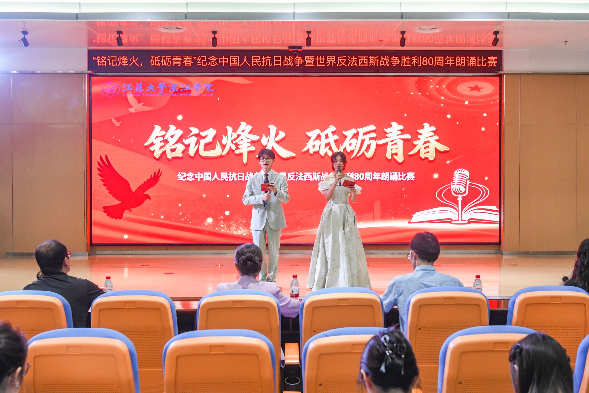 为缅怀革命先辈的丰功伟绩,激励全院师生在新时代新征程上奋勇前行。9月28日下午,江苏大学京江学院在学术交流中心4号报告厅举办“铭记烽火 砥砺青春”主题朗诵比赛。